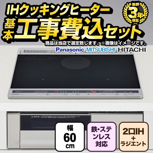 【楽天市場】【工事費込セット(商品+基本工事)】 [F-IH-2IHR-S-60-K] IHヒーター 福袋  スタンダードグレード 当店オリジナル IHクッキングヒーター 2口IH+ラジエント 鉄・ステンレス対応 幅60cm ブラック系 【楽天リフォーム認定商品】:家電と住宅設備の【ジュプロ】